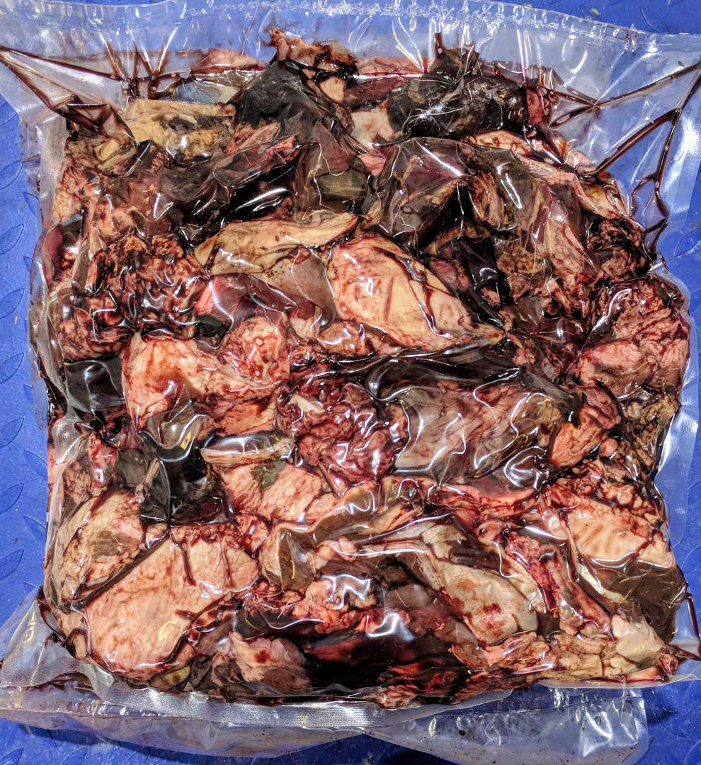 Заказала обрезь мяса северного оленя в этом магазине впервые. Мясо выглядит так, как на фото. Есть и соединительная ткань, и жилка, и кровь, есть мясные кусочки. Для собаки в самый раз. Было хорошо заморожено, при размораживании пахло замечательно. В свежести продукта сомнений не возникло.
